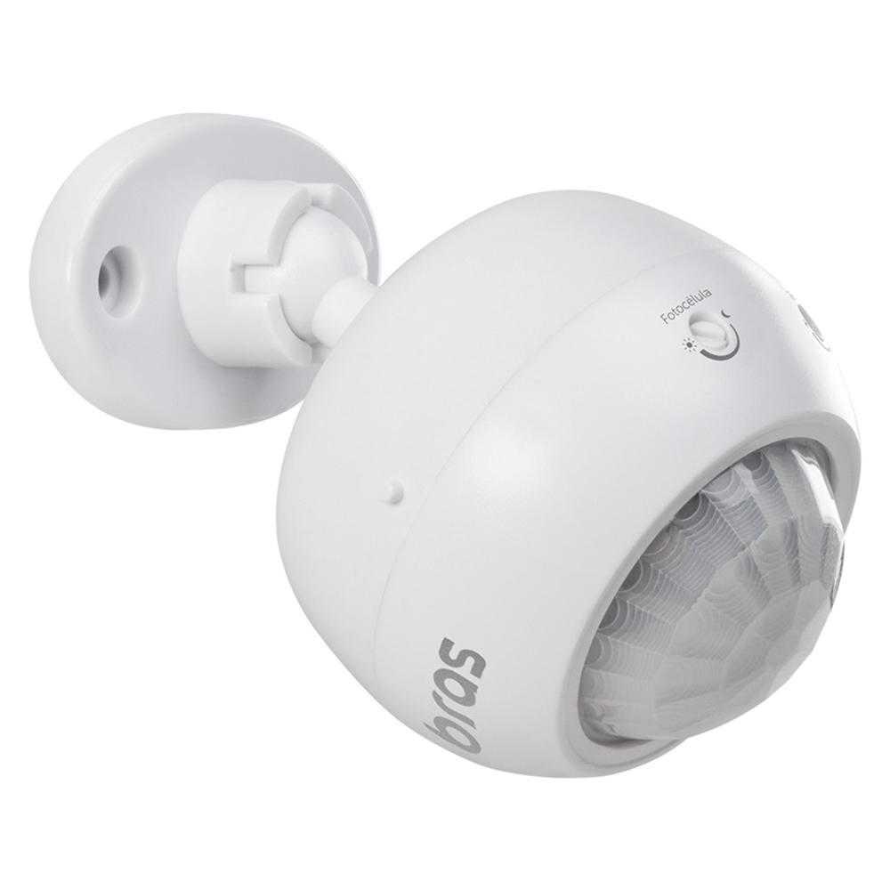 O sensor deve ser instalado em uma altura mínima de 2 e máxima de 4 metros. Ele possui um ângulo de detecção de 360° e tem um alcance de até 8 metros. Por ser articulado, você pode direcionar o sensor para cobrir a área que você precisa.