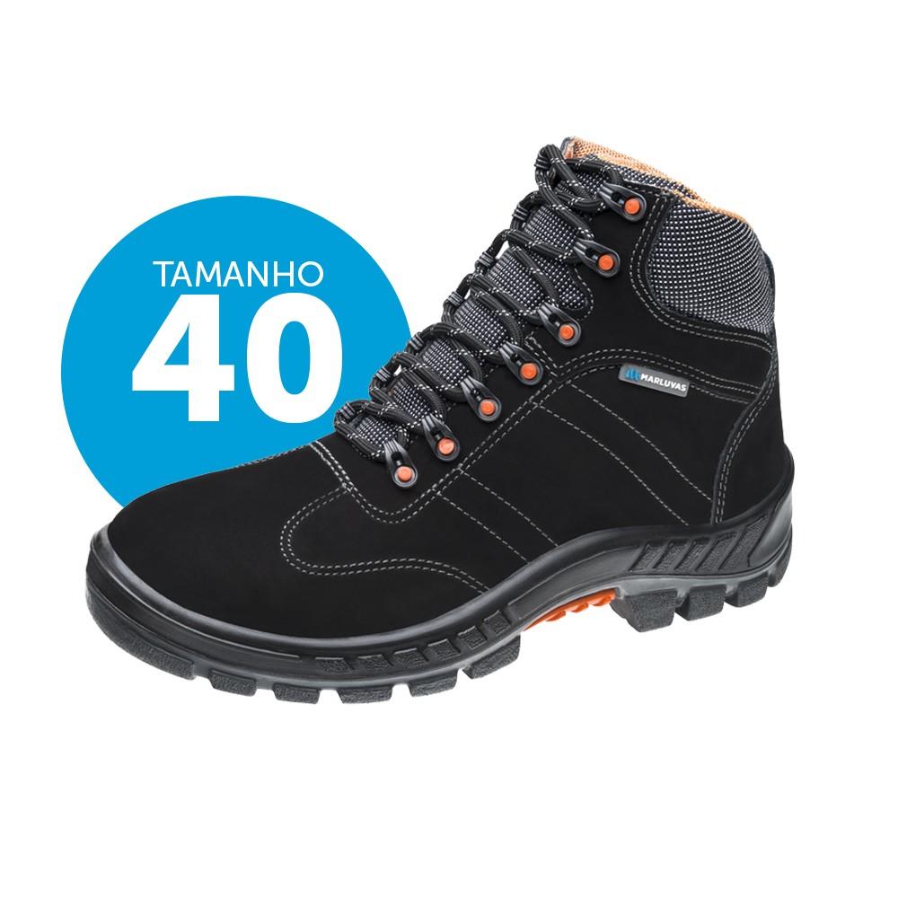 40 BOTA C/ CADARÇO BICO PLASTICO COURO NOBUCK PRETO 15/17 NEW PRIME SALTO NUBUCK
