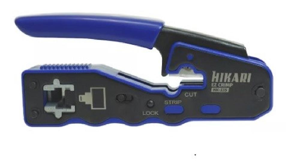 O Alicate de Crimpar HK-335 EZ CRIMP, Corta, Decapa e Crimpa conector de passagem RJ 45 e conector convencional RJ 45 (CAT.5/CAT.5E/CAT.6).
