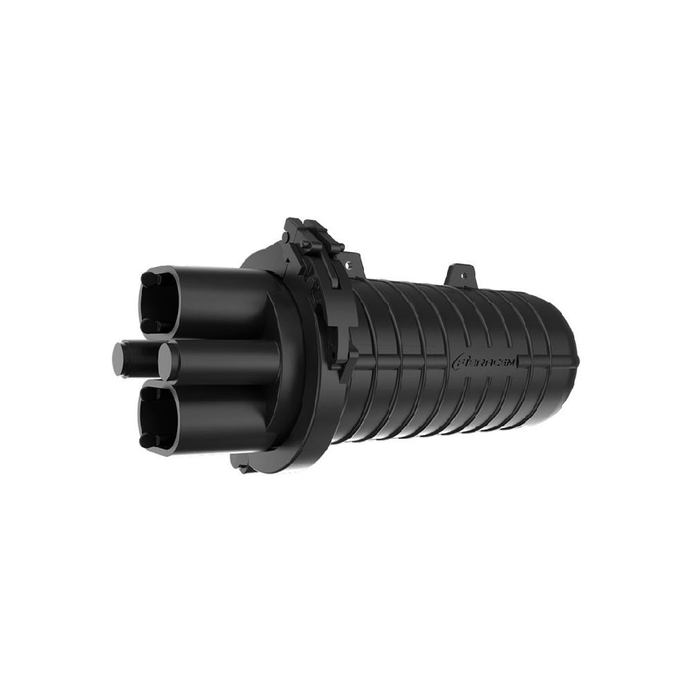 A Caixa de Emenda Óptica Dual Junior possui configuração unidirecional, com 2 entradas ovais – uma principal e uma reserva – que permitem o fechamento termocontrátil ou mecânico e 2 entradas cilíndricas para cabos derivados. E fácil fechamento mecânico entre a cúpula e base através de um conjunto de abraçadeiras. Homologada pela Anatel.