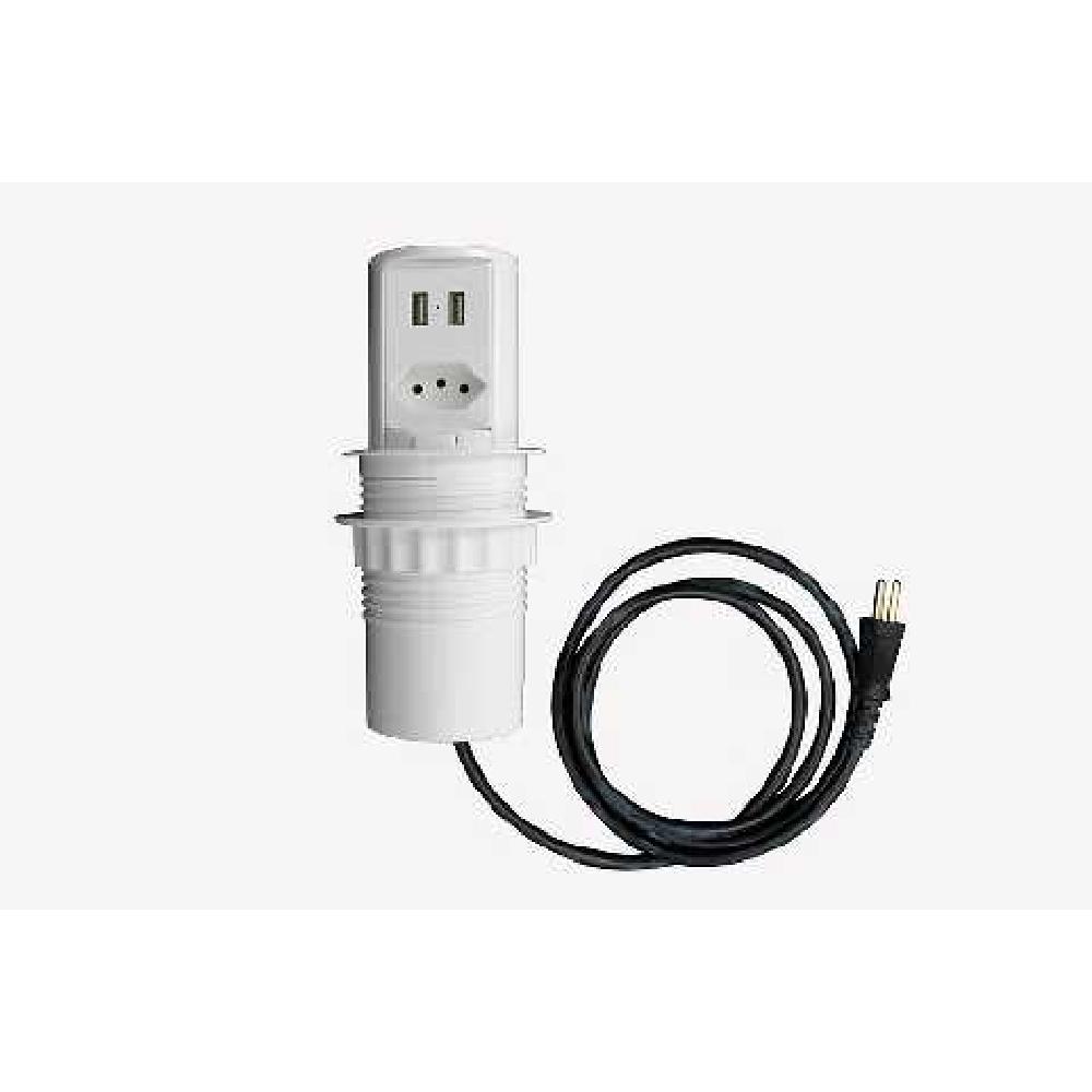 Produto Retrátil, com abertura Manual, equipado com 1 Tomada elétrica 10A e duplo USB charger 2.6A.