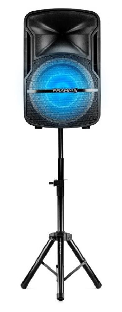 O kit acompanha tripé metálico, microfone sem fio de longo alcance e uma caixa de som de 670W RMS.